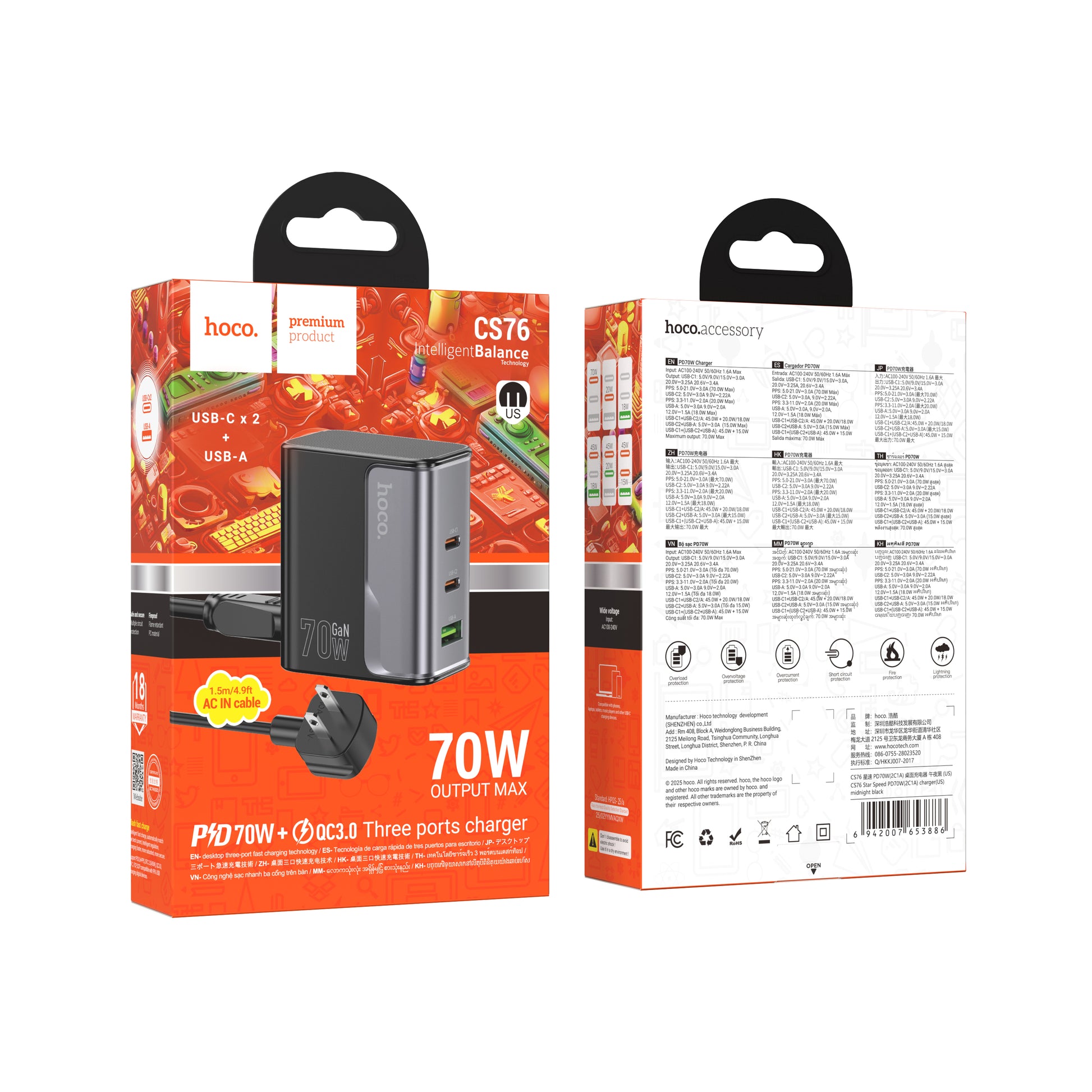 2. Output: USB-C1: 70W (PD/QC/FCP/AFC). USB-C2: 20W (PD/QC/FCP/AFC). USB-A: 18W (QC/FCP/AFC).